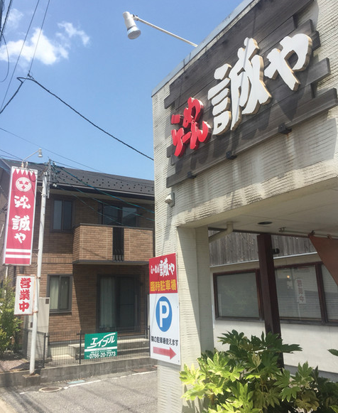 高岡市宝町にある行列のできるブラックラーメンが人気の『誠や』。高岡市役所の裏手の路地を1本入った所に有ります。